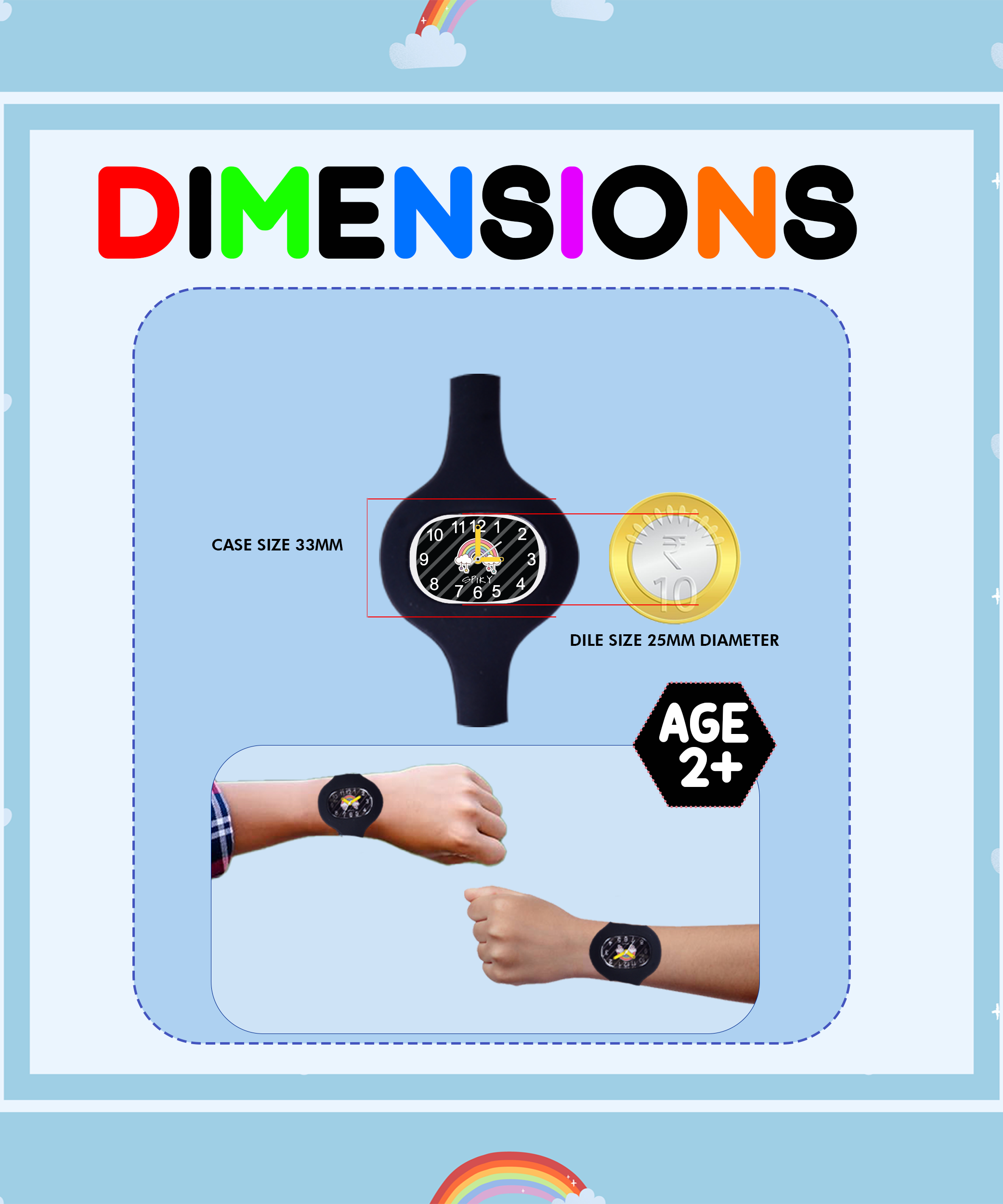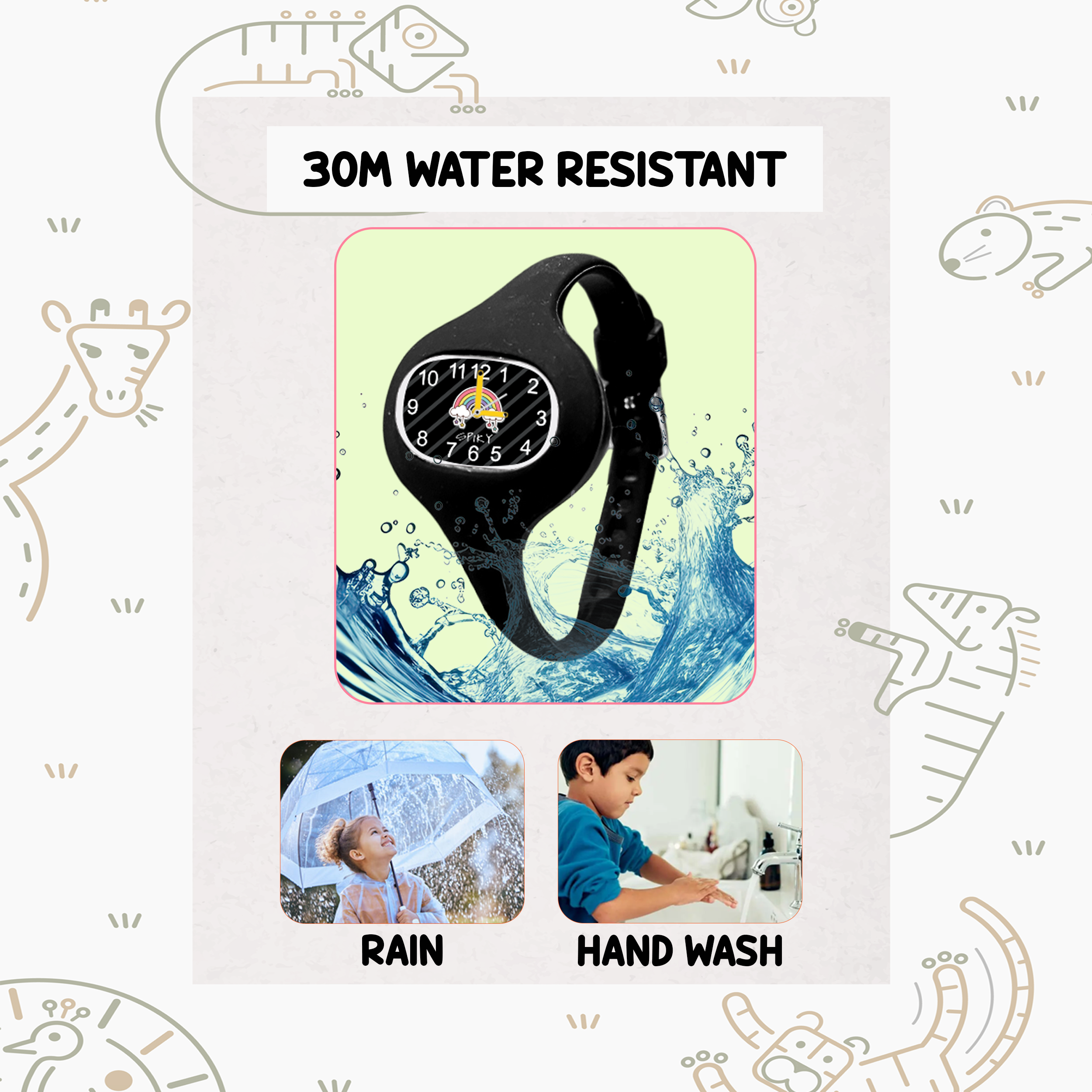 स्पाइकी एलियन अनोखी अंडाकार स्टाइलिश एनालॉग बच्चों की घड़ी