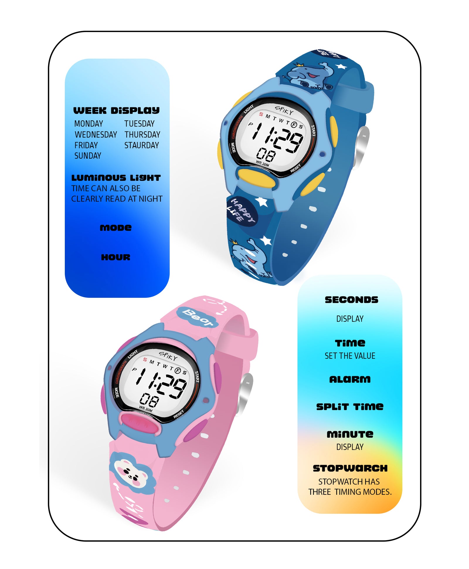 Spiky Eva18 Printed Strap Round Sports Digital Watch - Blue Pink