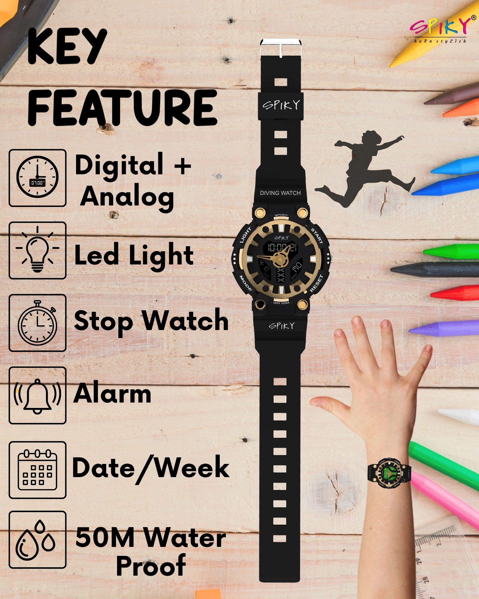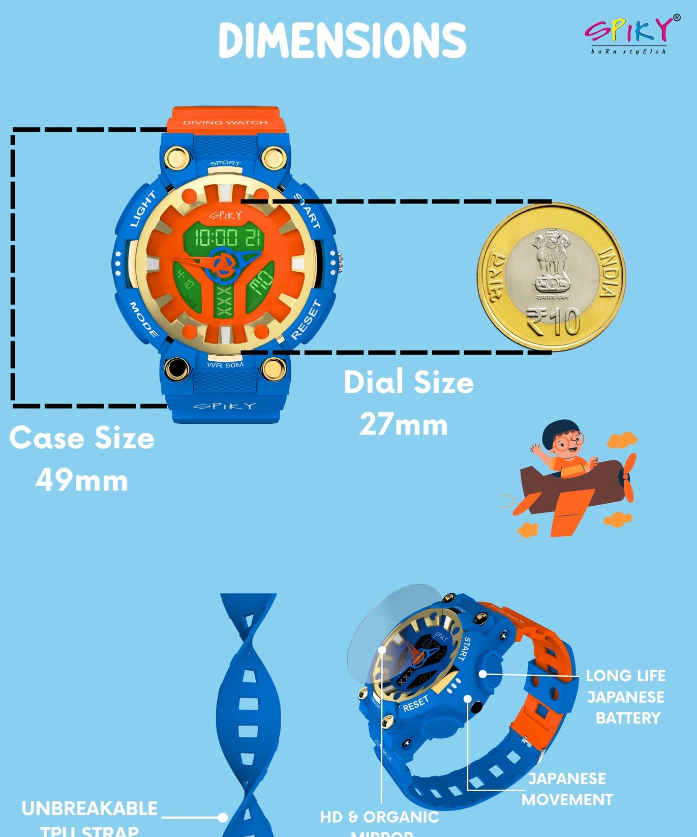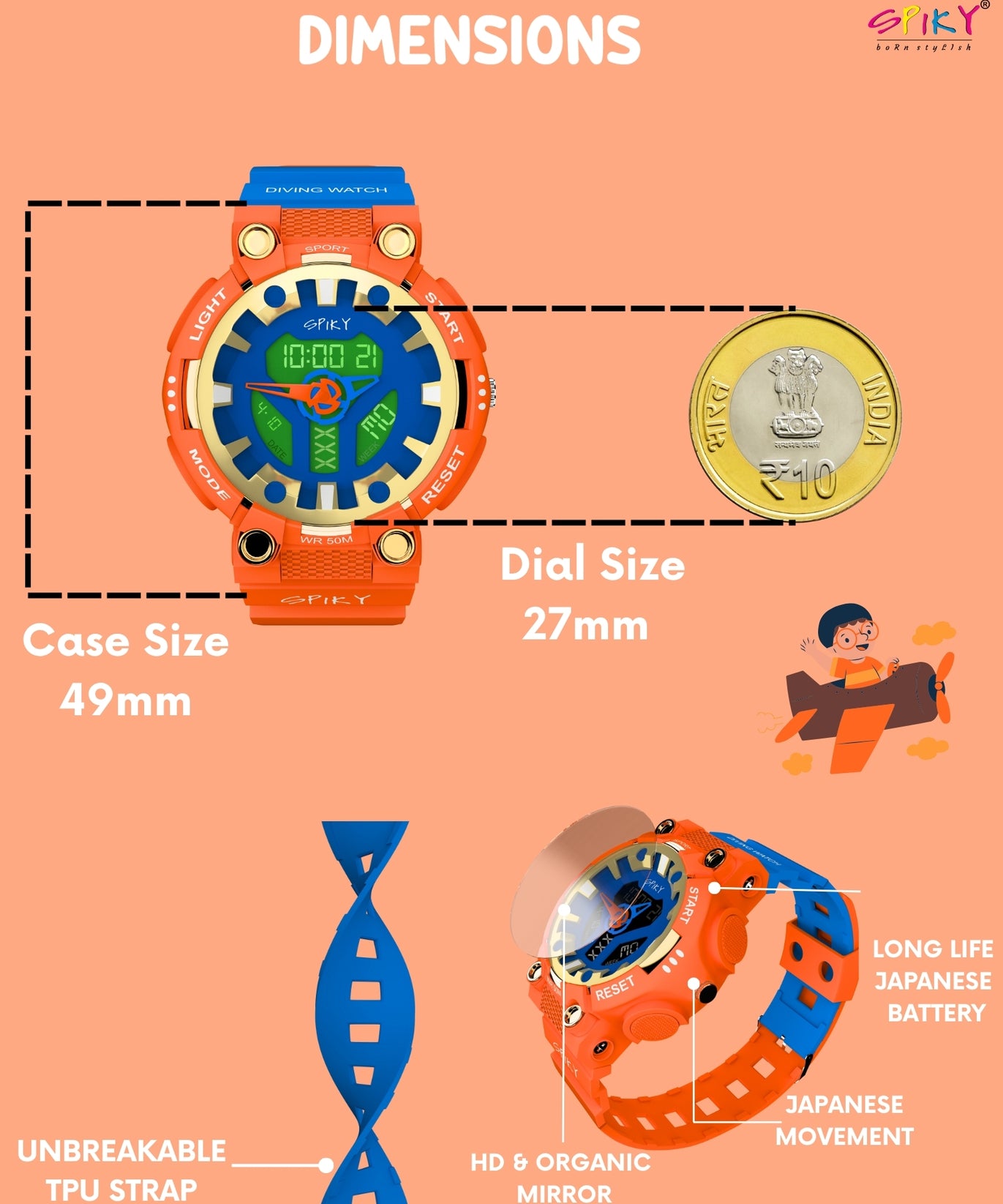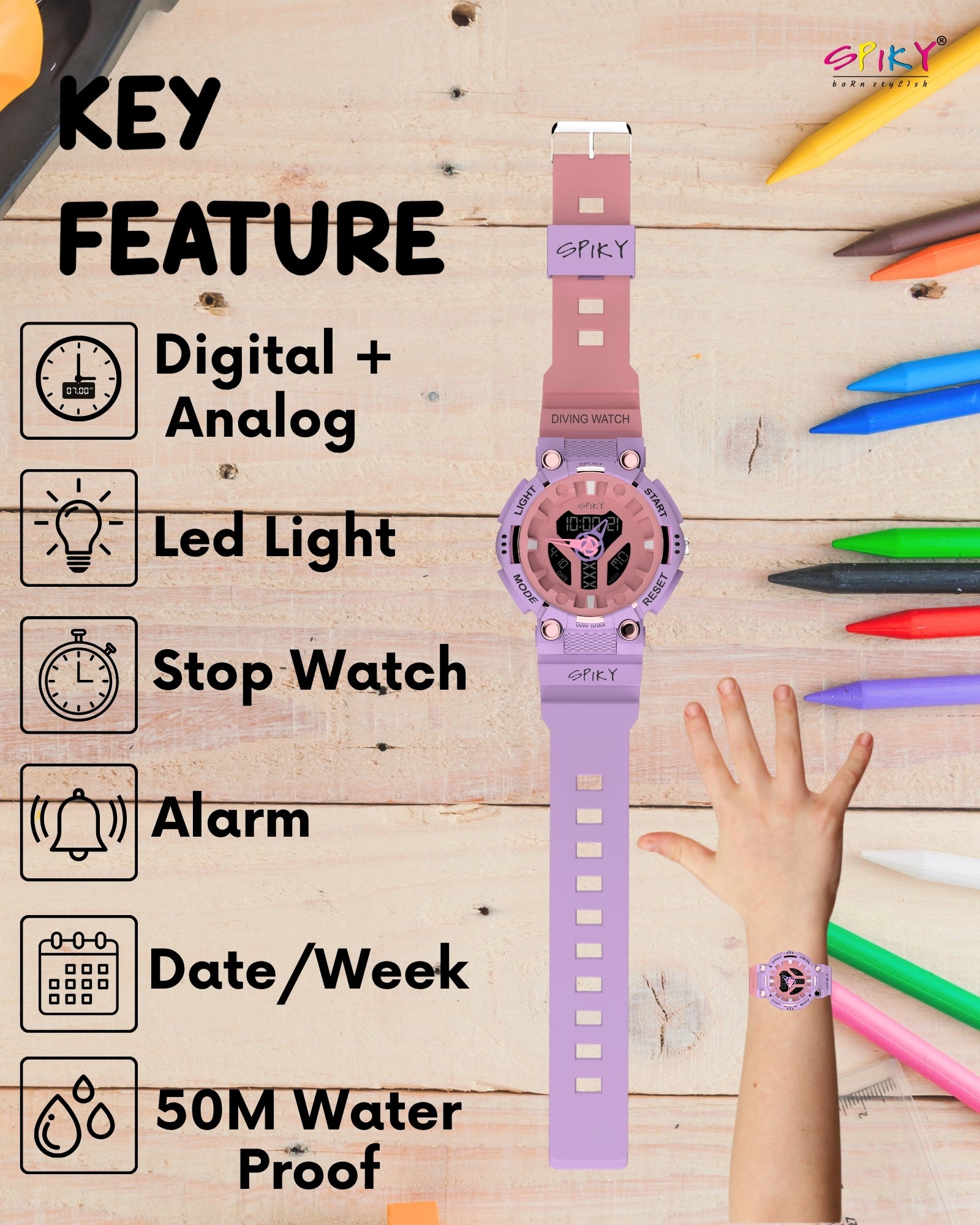 बच्चों के लिए स्पाइकी EVA31 प्रीमियम एनालॉग-डिजिटल घड़ी