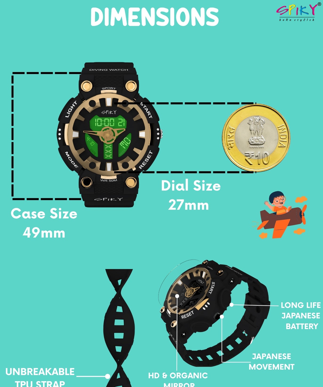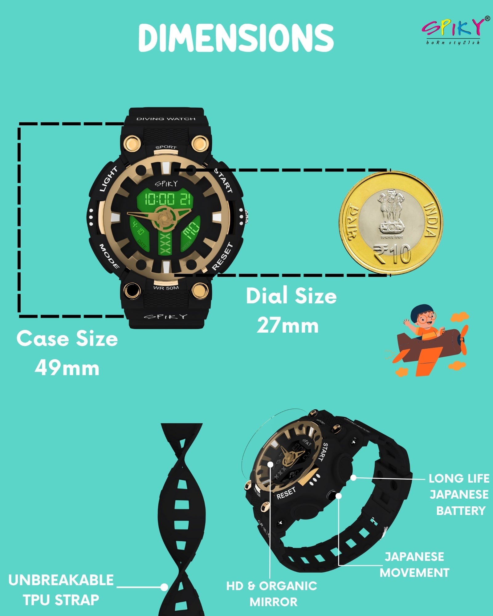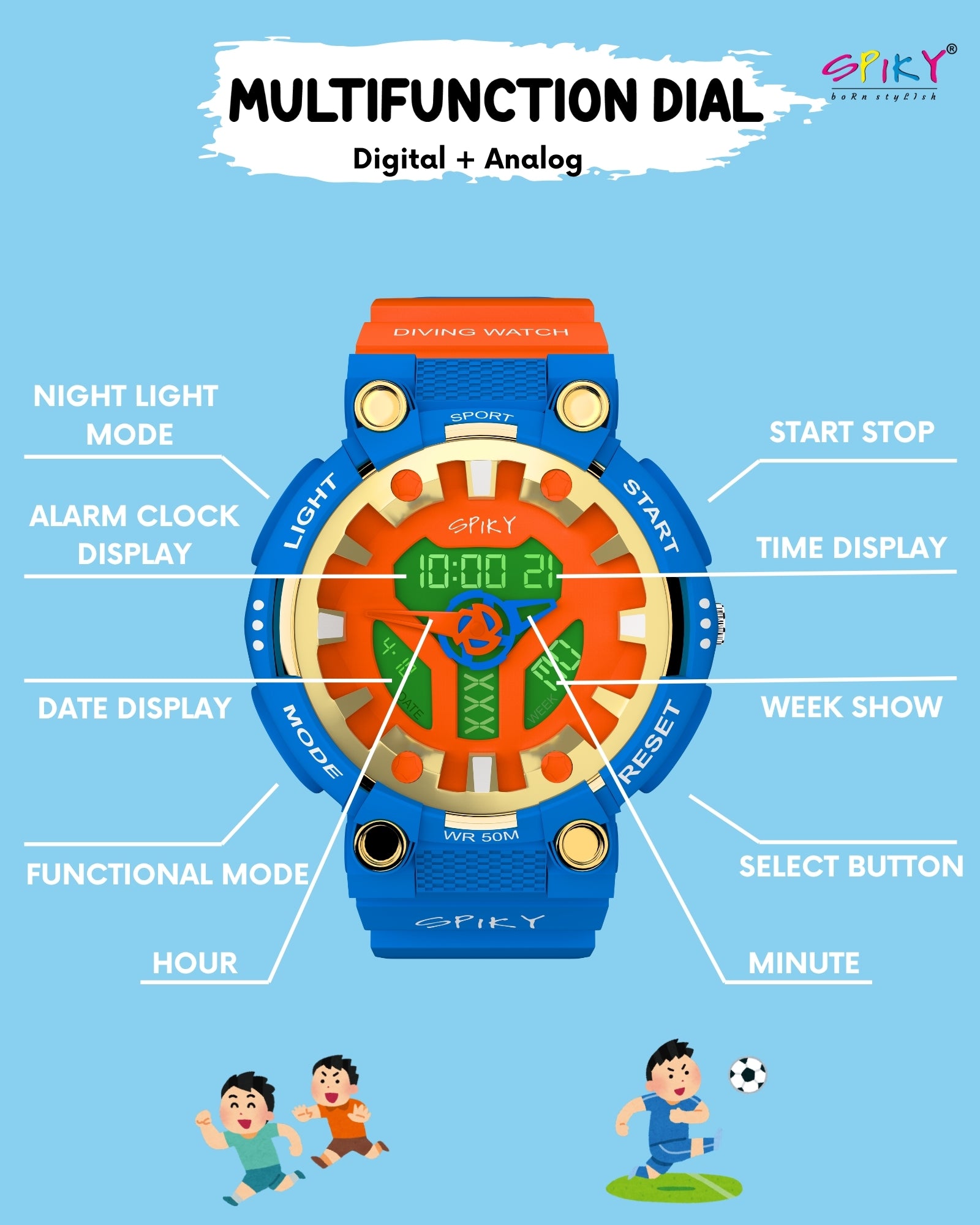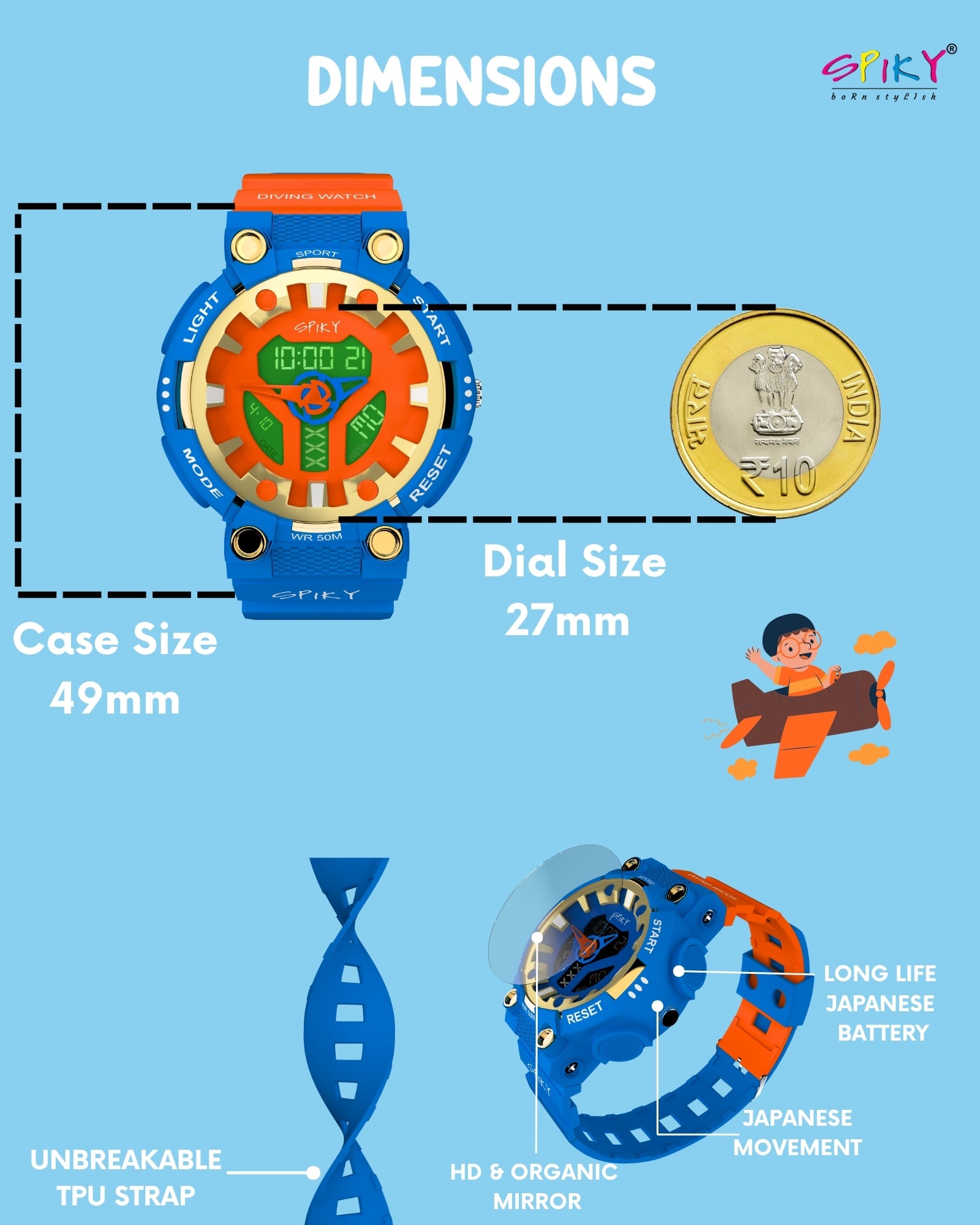 बच्चों के लिए स्पाइकी EVA31 प्रीमियम एनालॉग-डिजिटल घड़ी