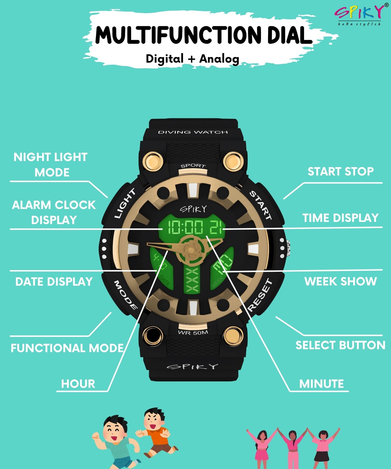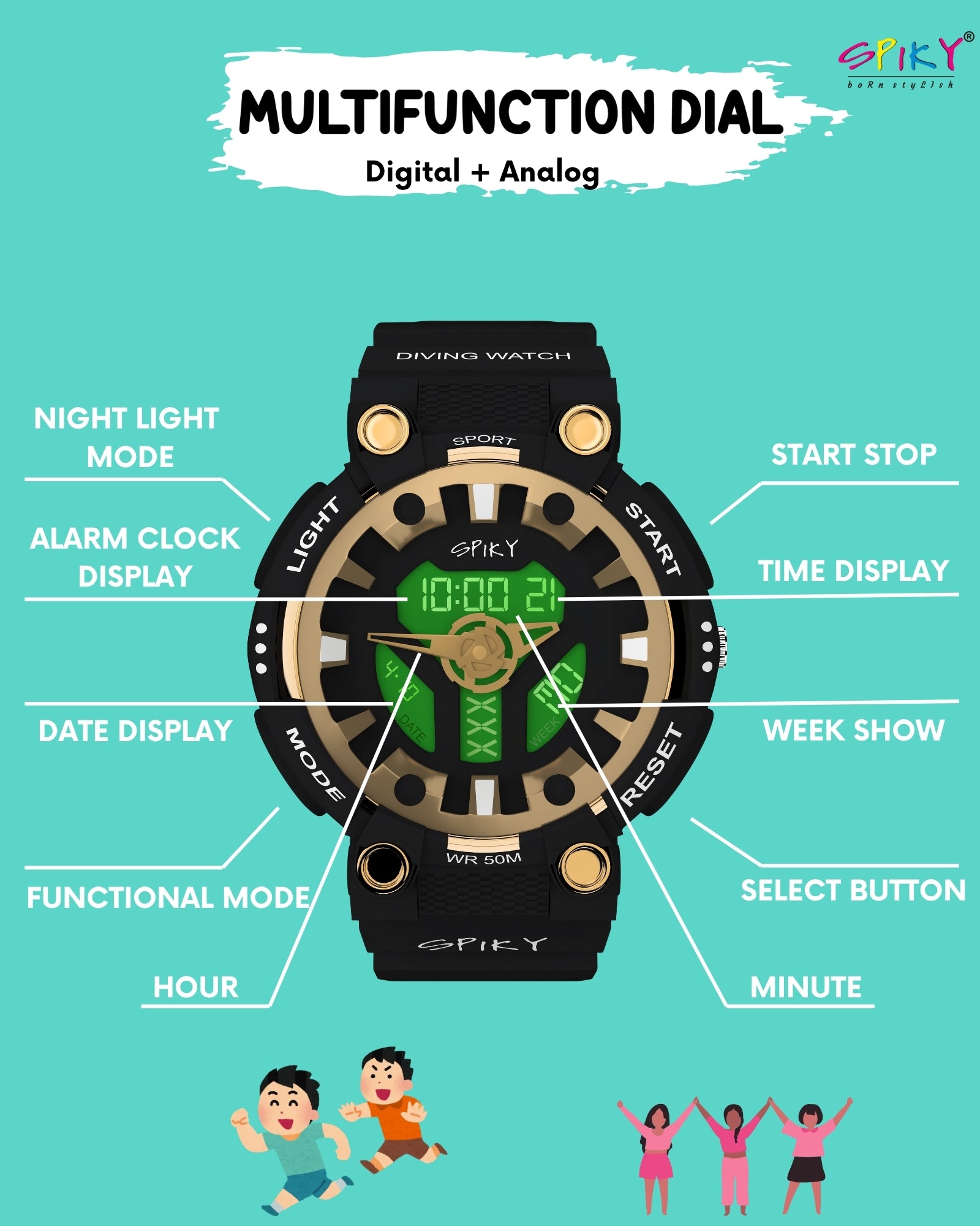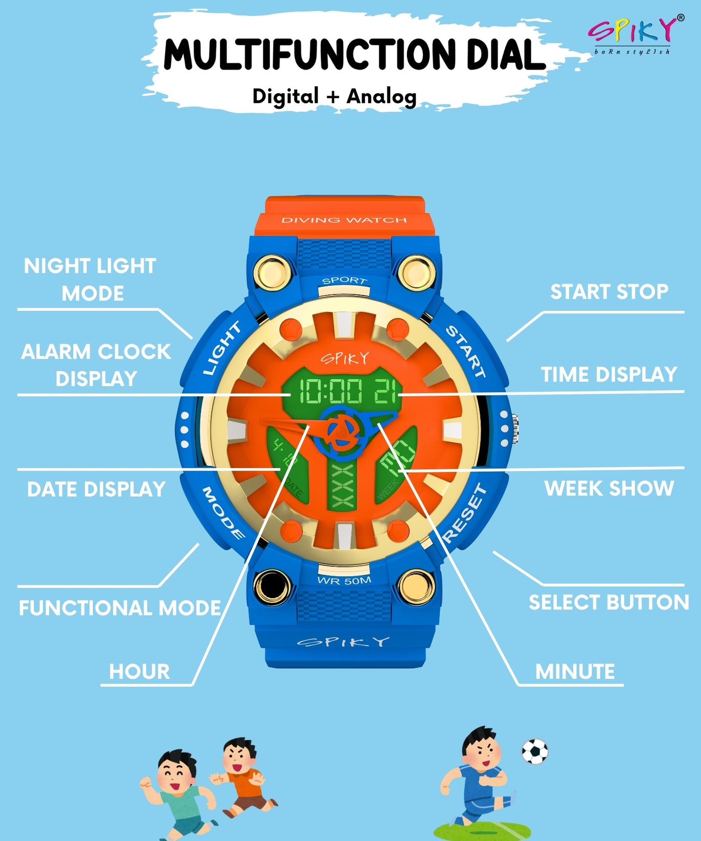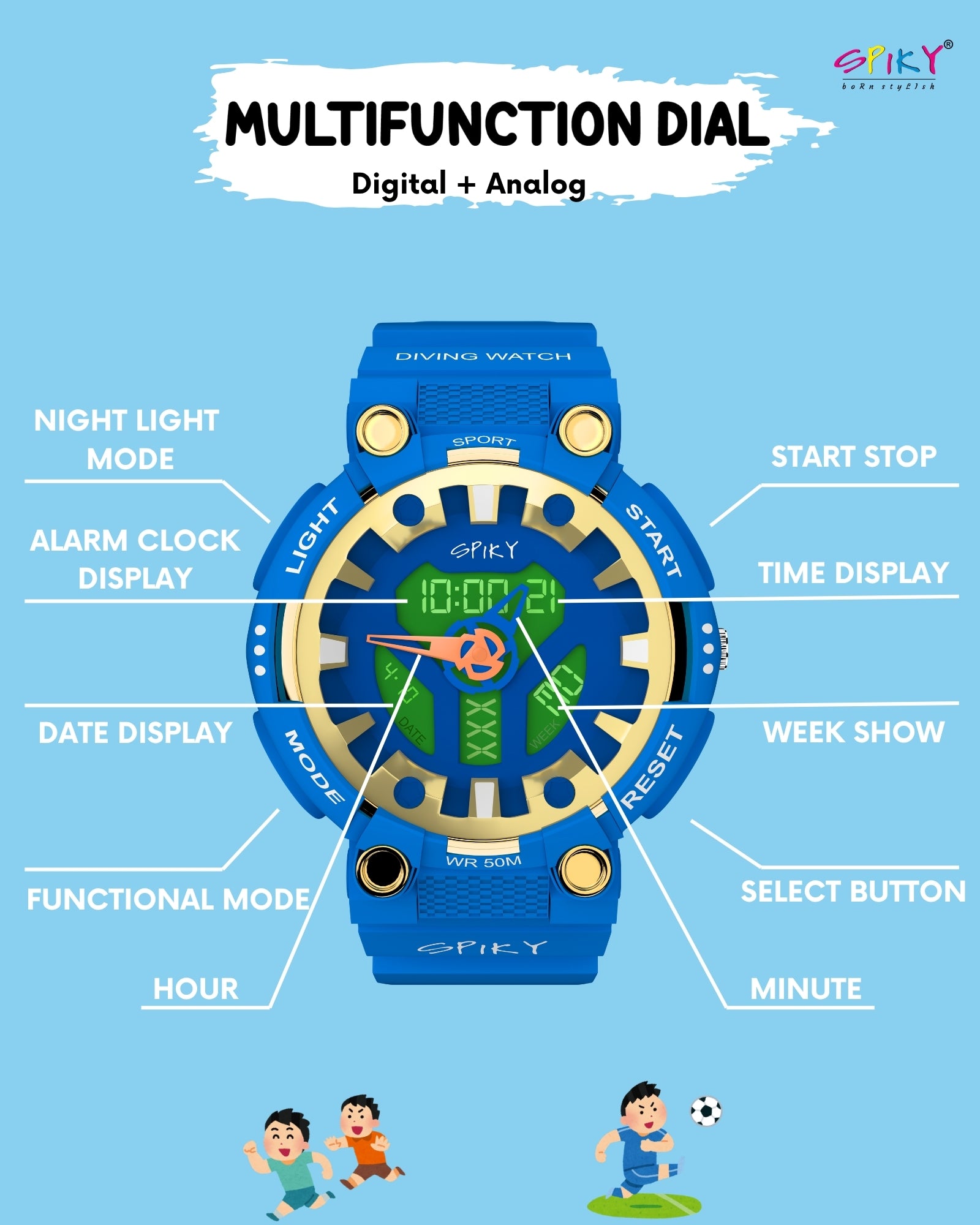 बच्चों के लिए स्पाइकी EVA31 प्रीमियम एनालॉग-डिजिटल घड़ी