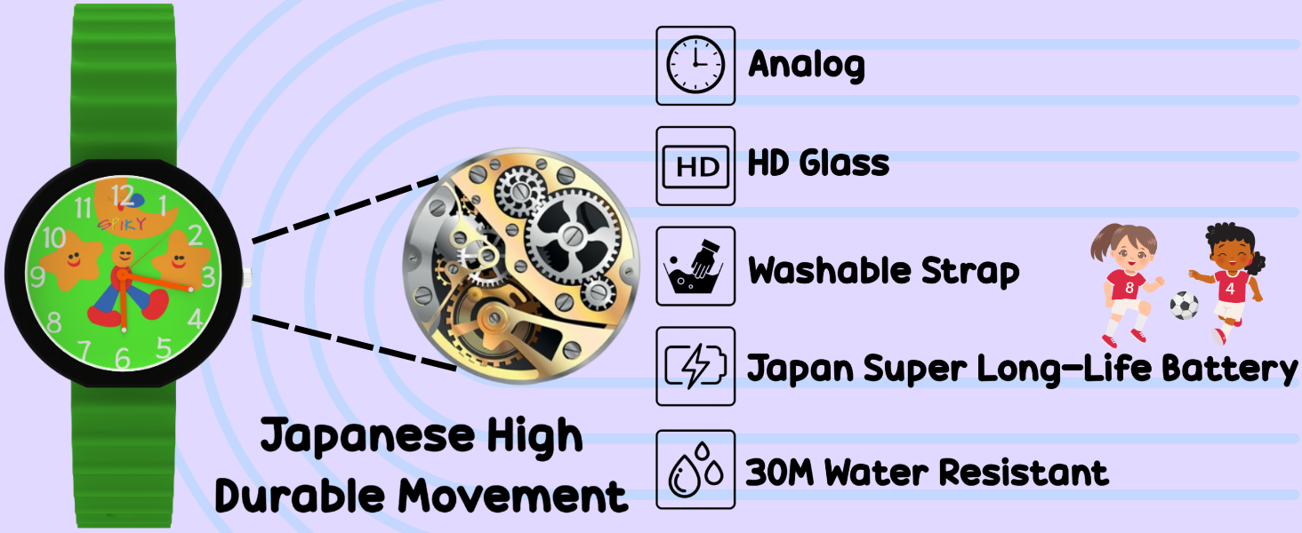 1 घड़ी, 1 उपयोगकर्ता मैनुअल, 1 कार्टून स्टिकर