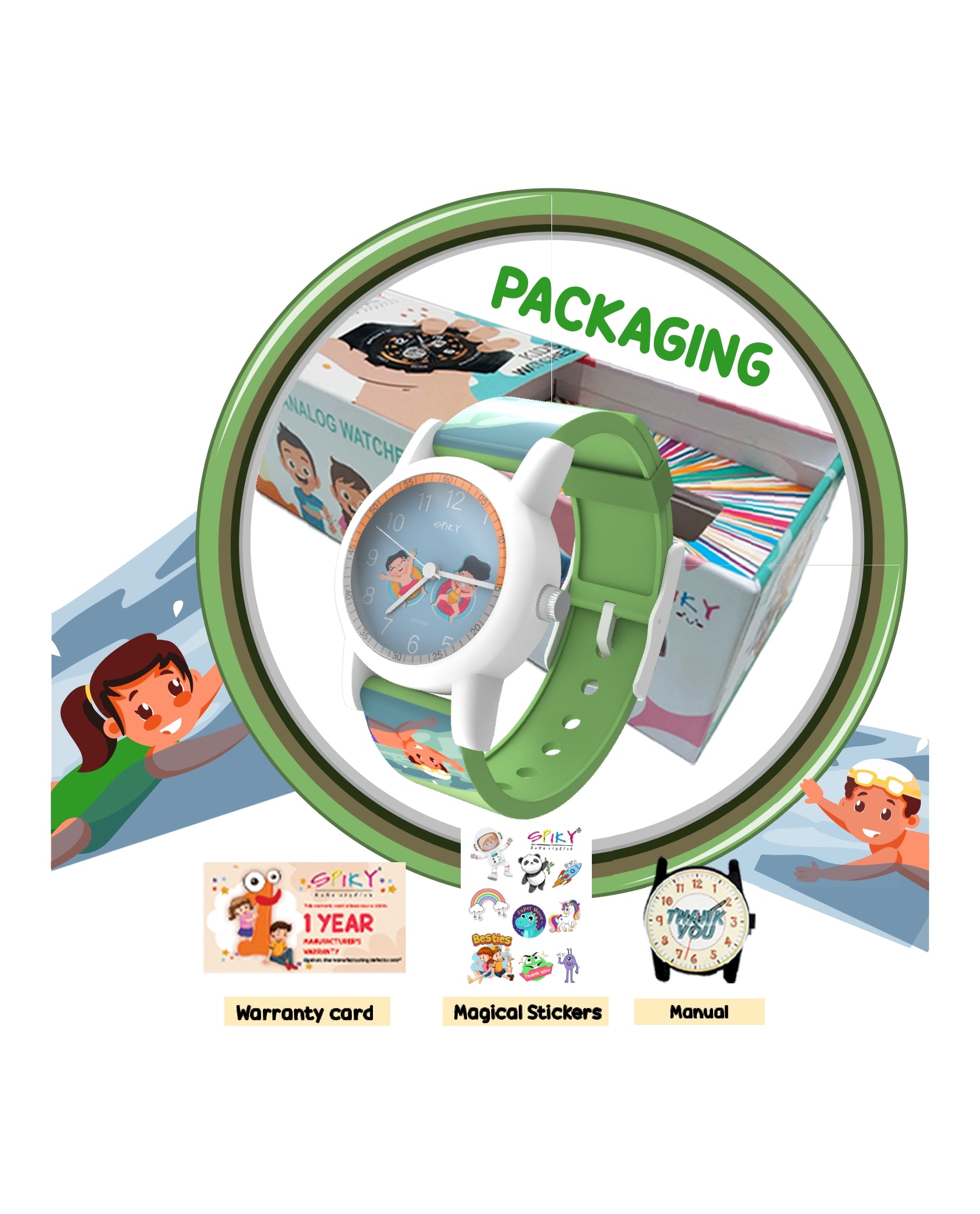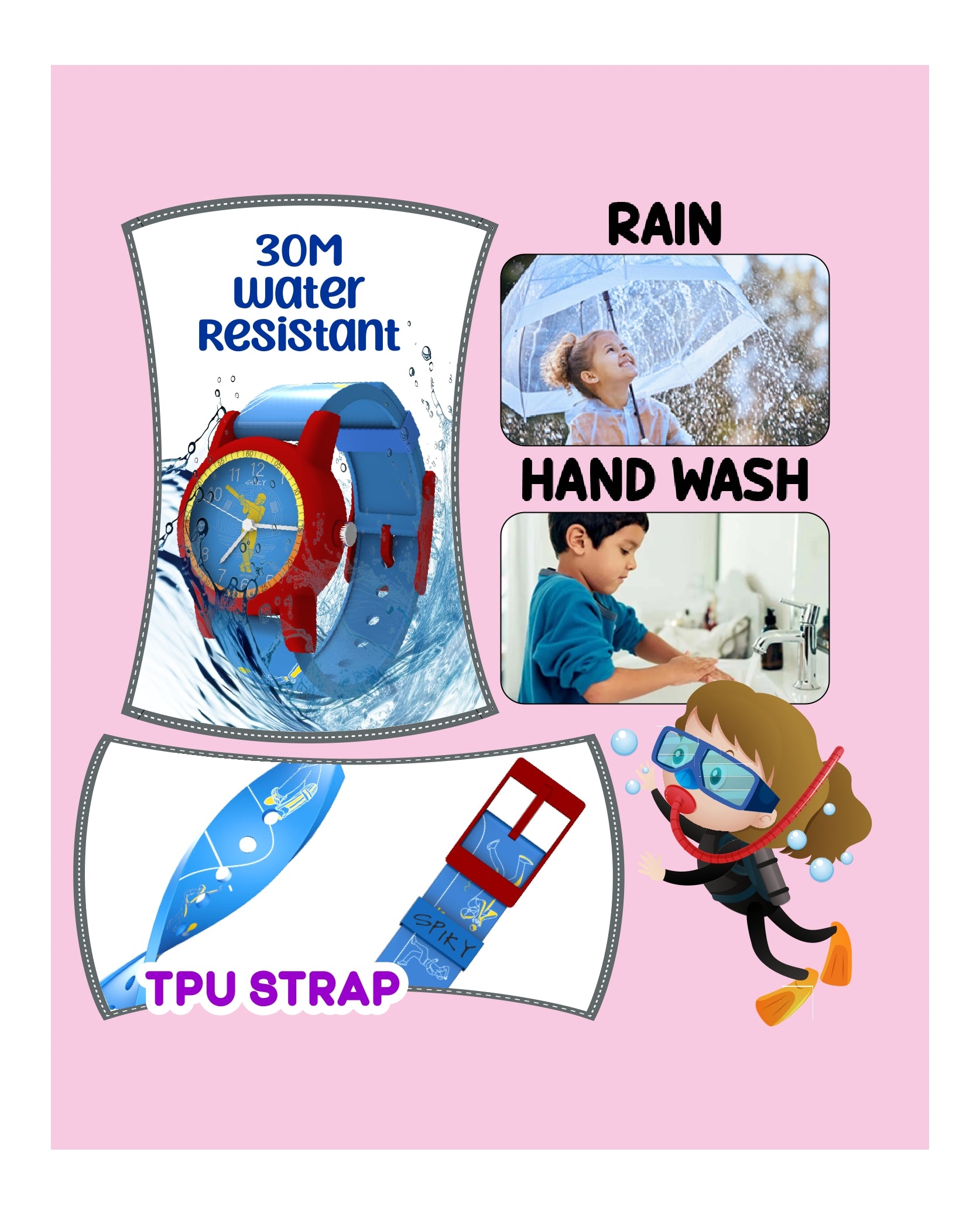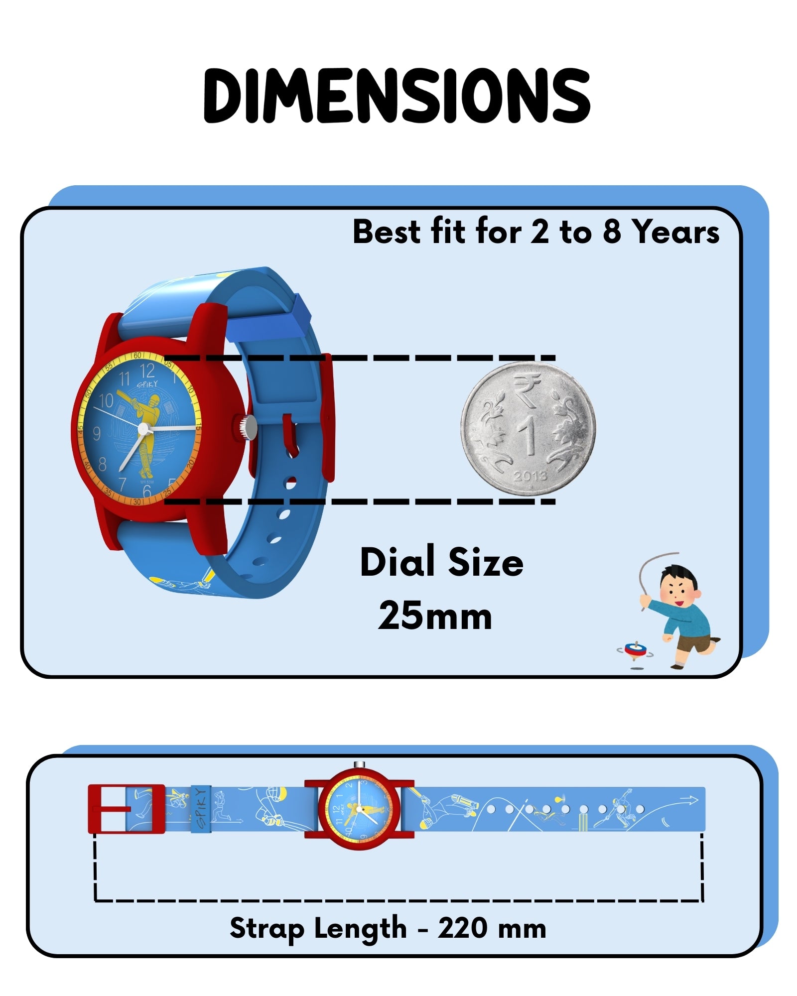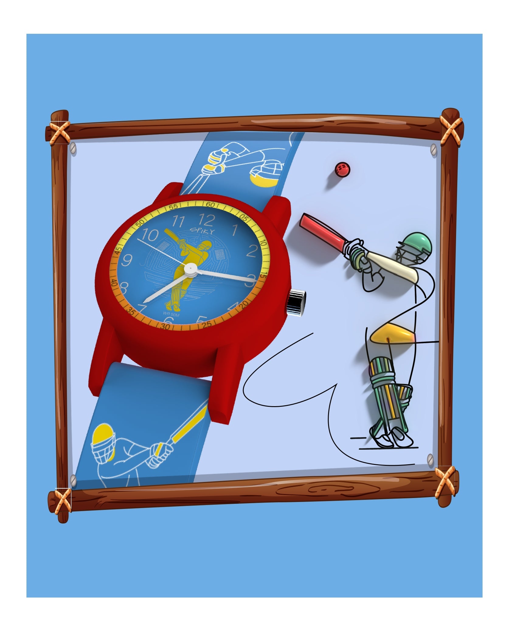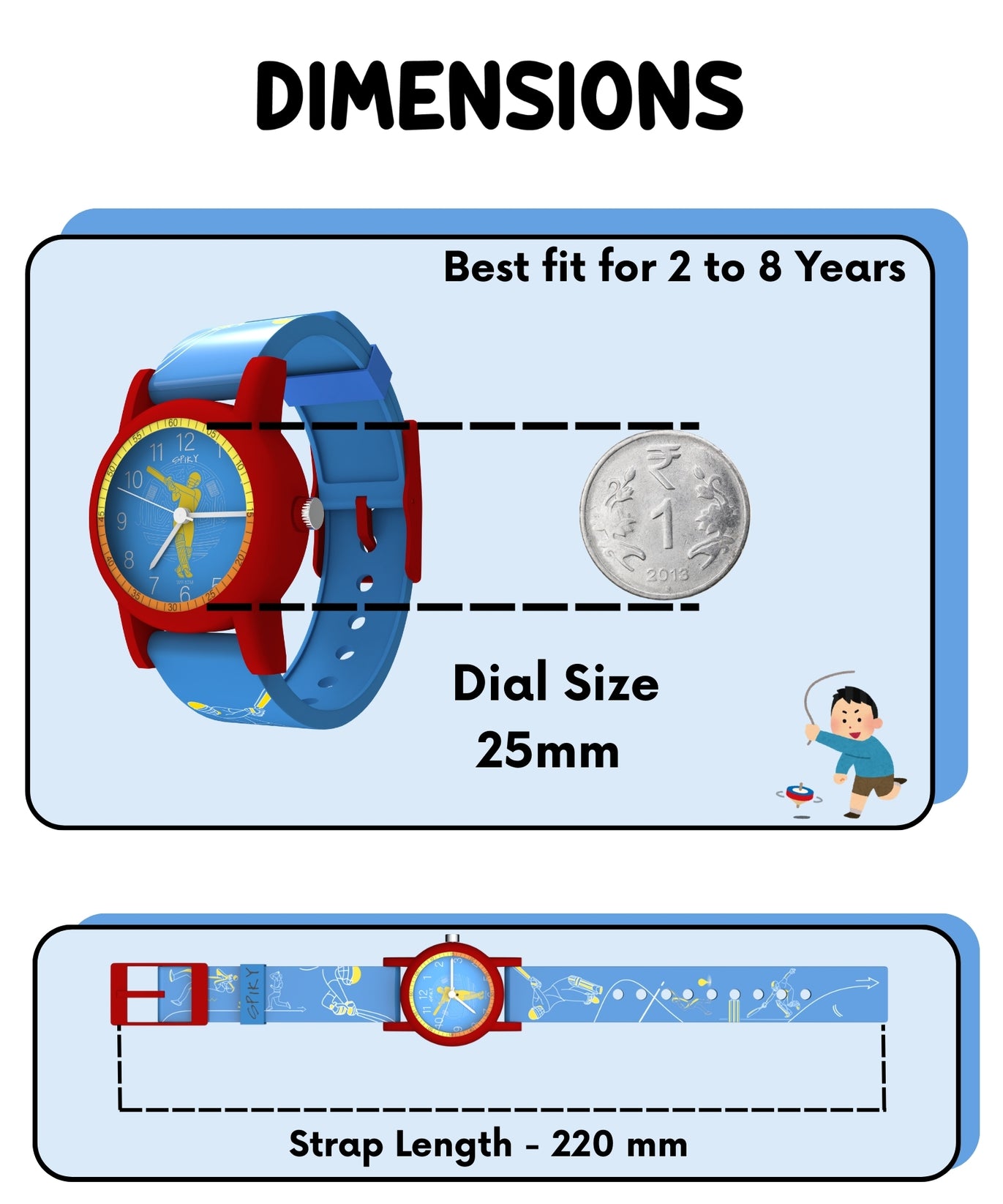 • स्पोर्ट्स थीम प्रिंटेड डायल और स्ट्रैप