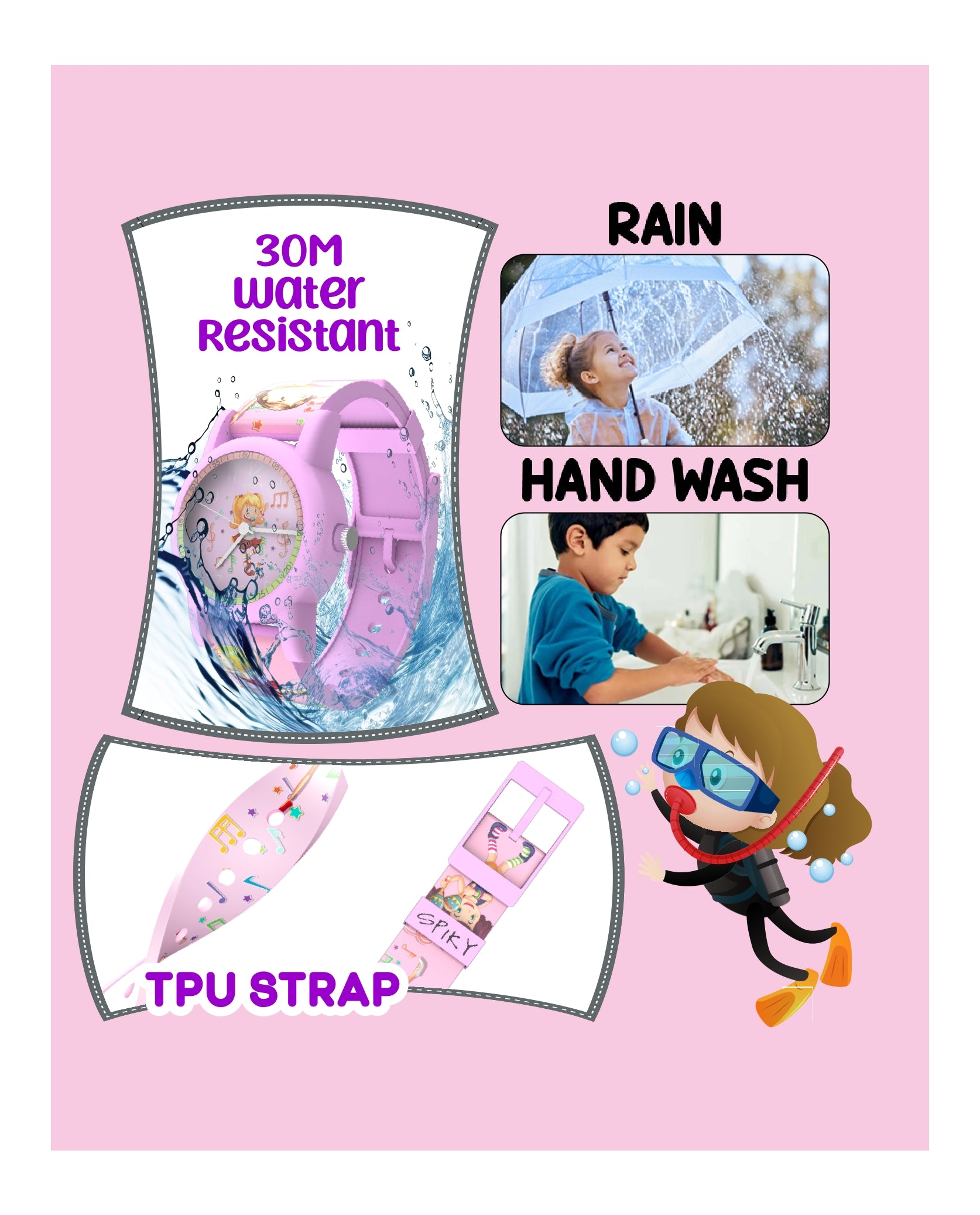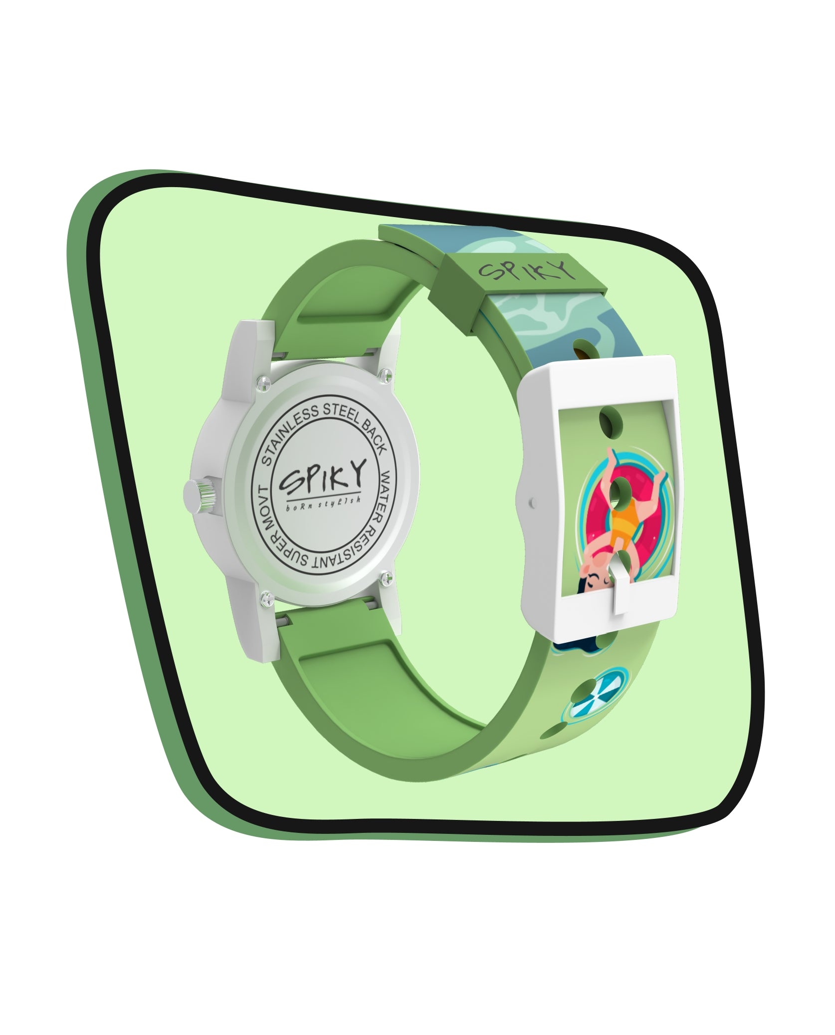 बच्चों के लिए स्पाइकी स्लीक गोल फ्लोरल प्रिंटेड एनालॉग घड़ी - 2 से 8 साल के बच्चों के लिए उपयुक्त
