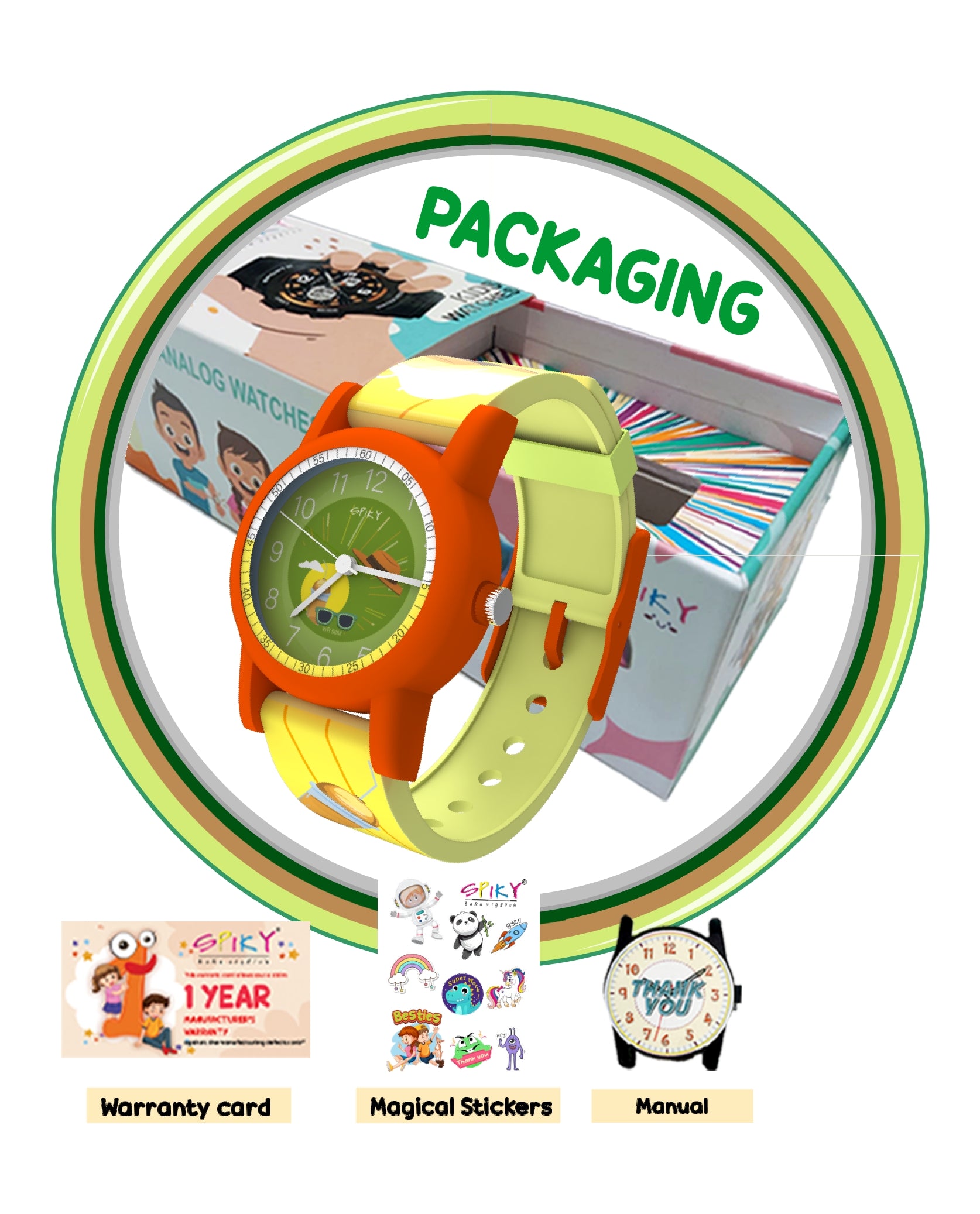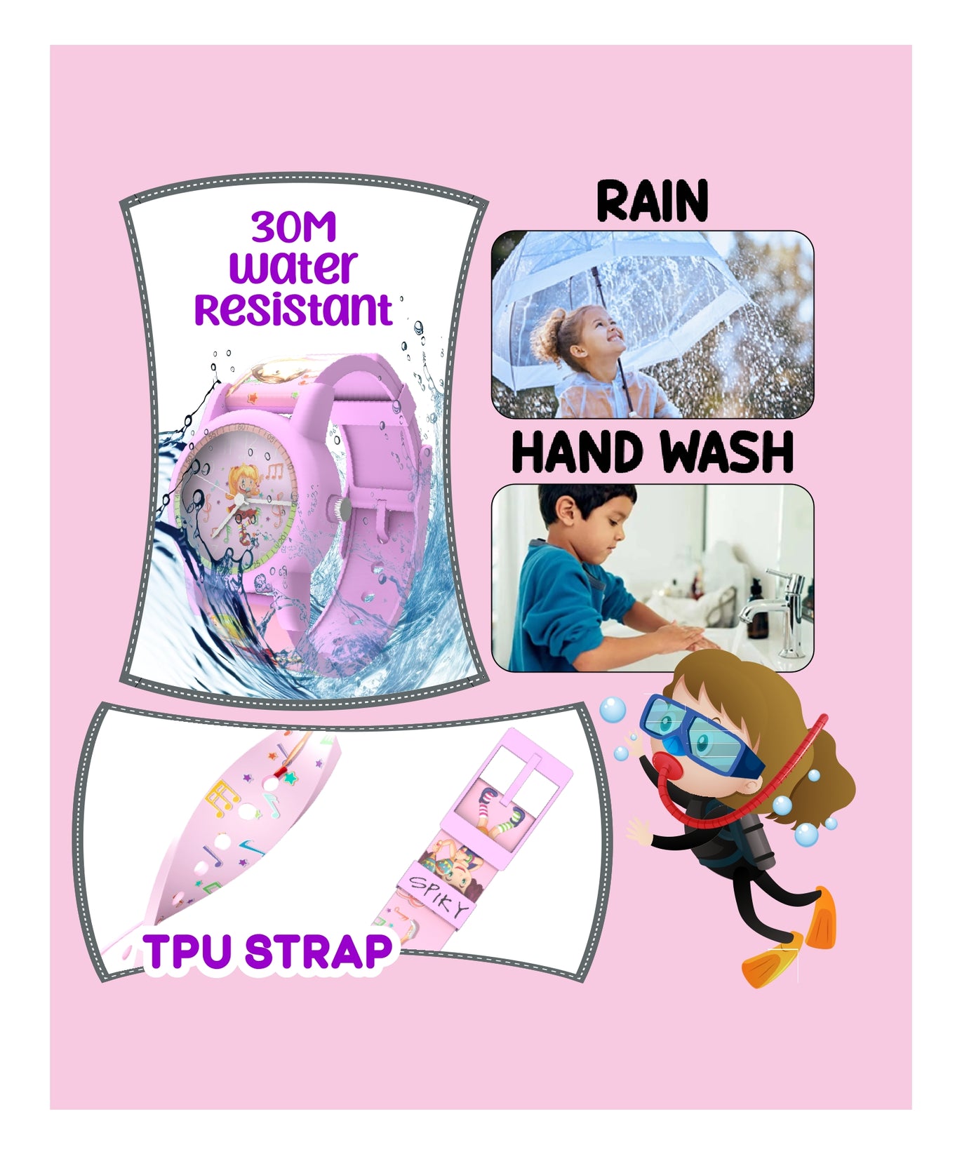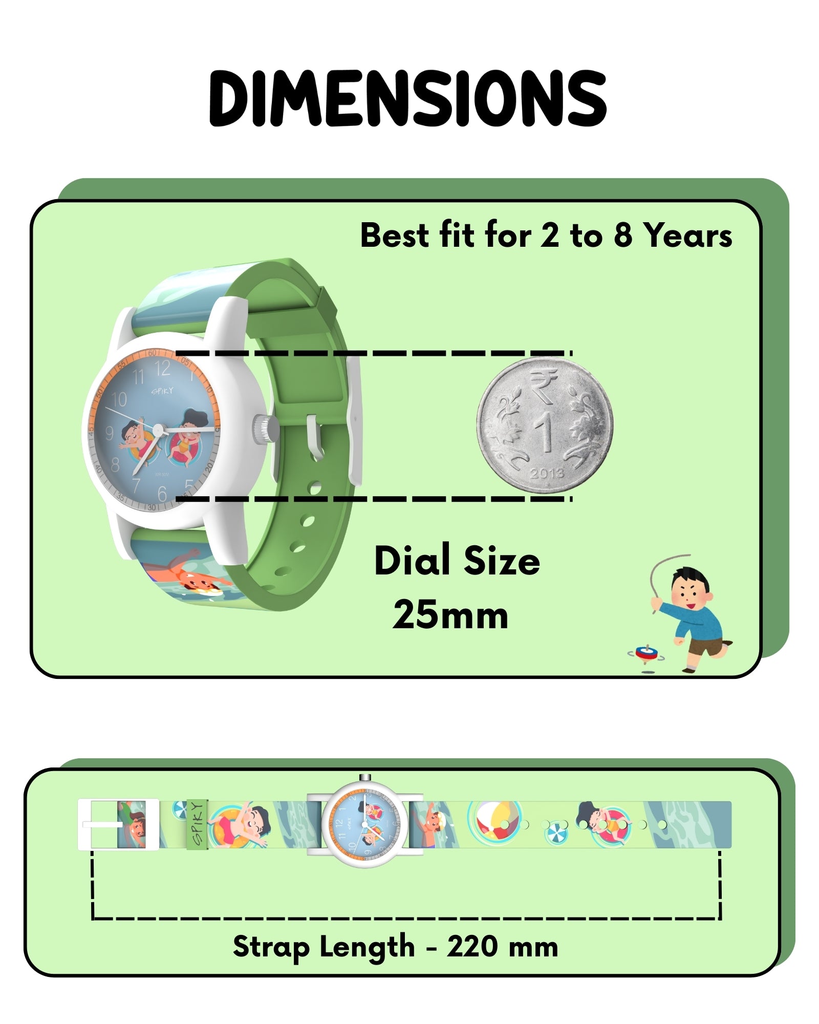 बच्चों के लिए स्पाइकी स्लीक गोल फ्लोरल प्रिंटेड एनालॉग घड़ी - 2 से 8 साल के बच्चों के लिए उपयुक्त