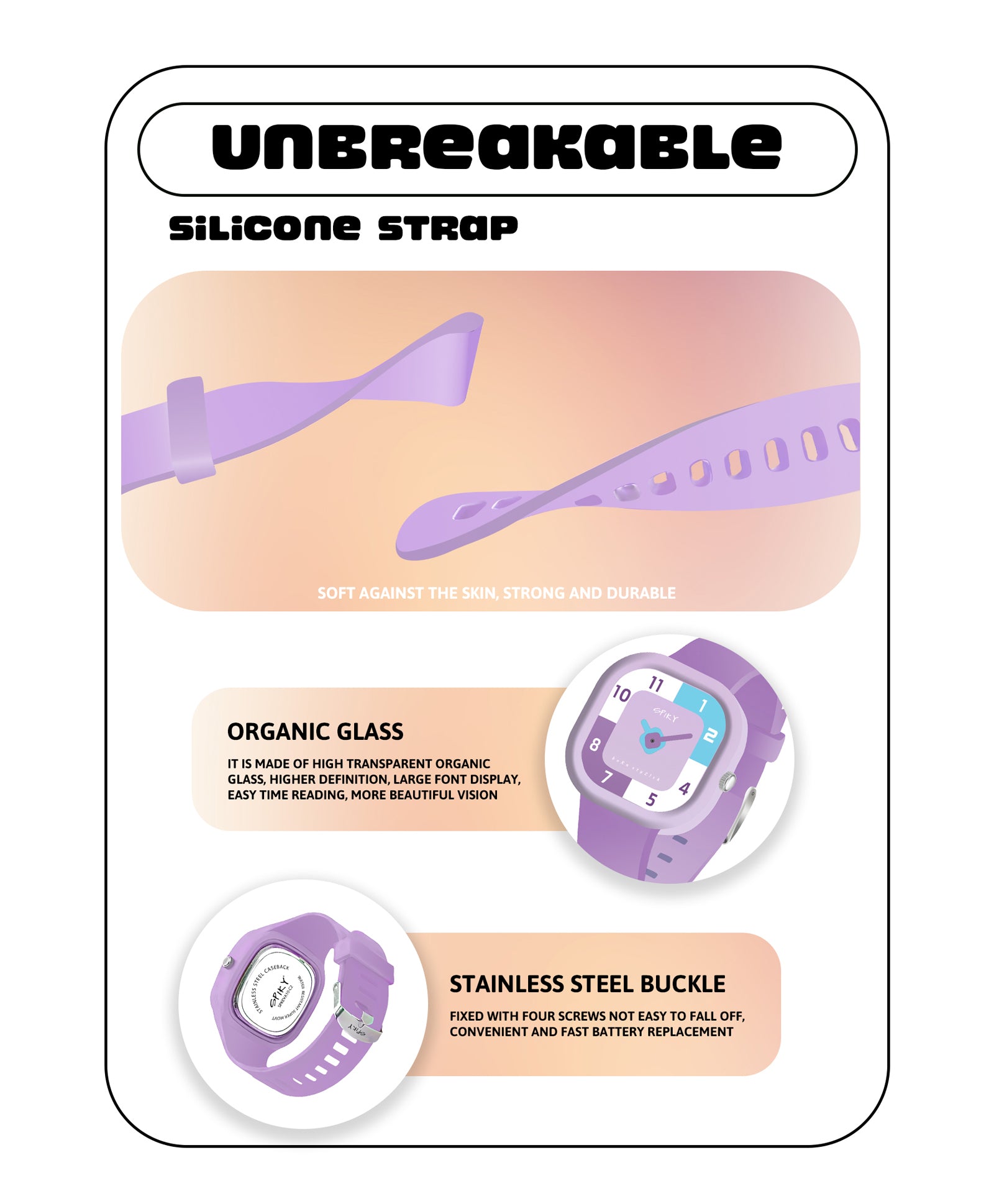 बच्चों के लिए स्पाइकी ईवा10 स्क्वायर एनालॉग घड़ी